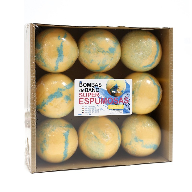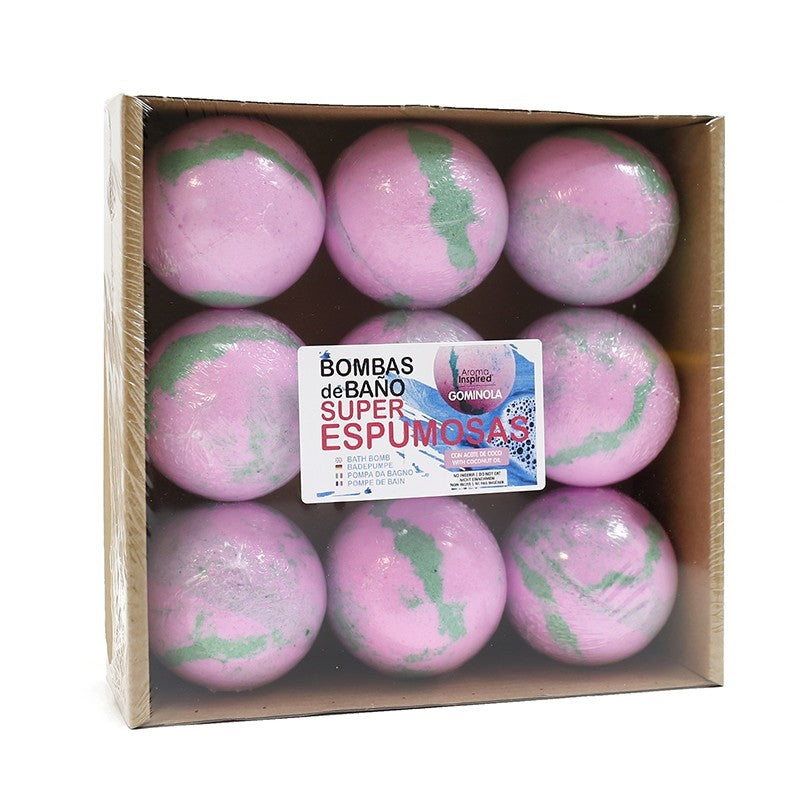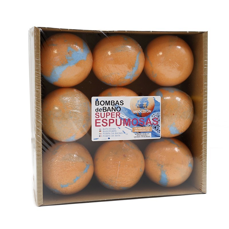 Bombas baño súper espumosa, deliciosos aromas. Vienen en caja de 9 unidades. Cada bomba baño está retractilada individualmente. Fórmula mejorada y muy compactas.